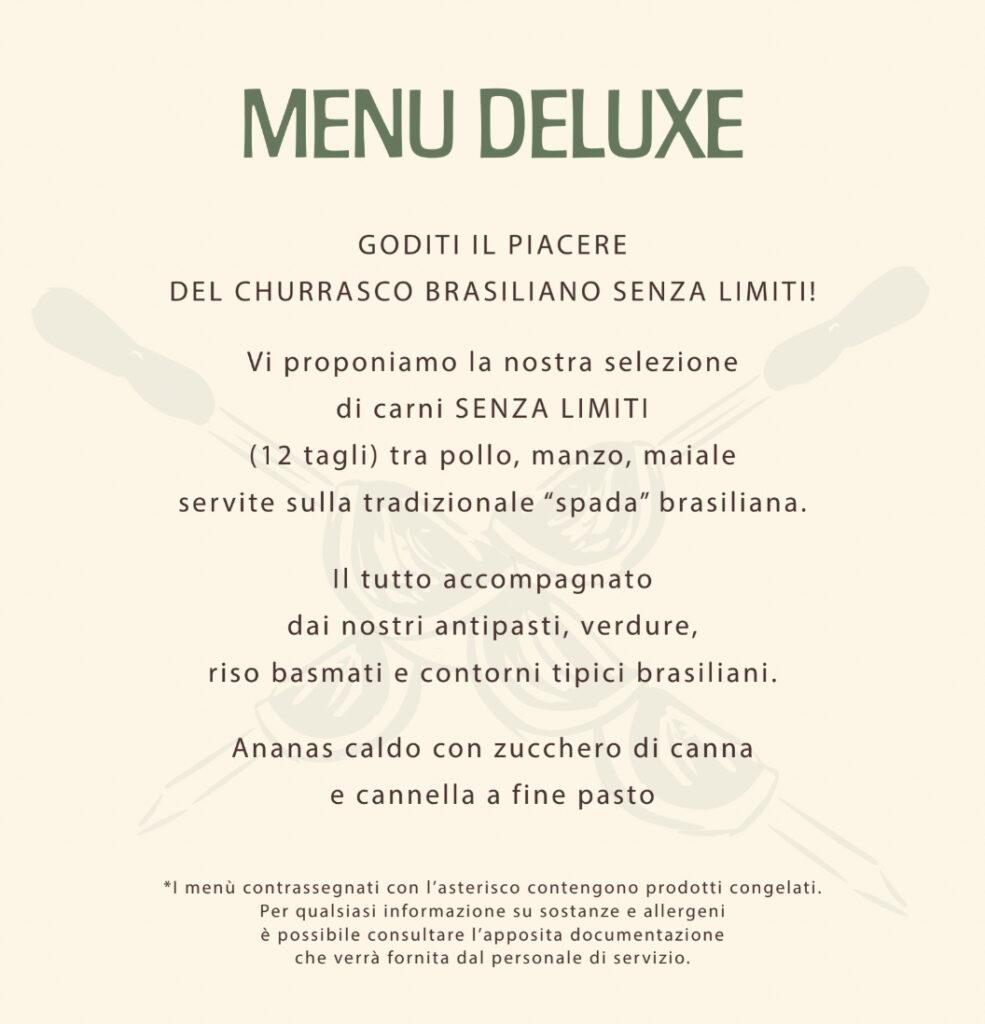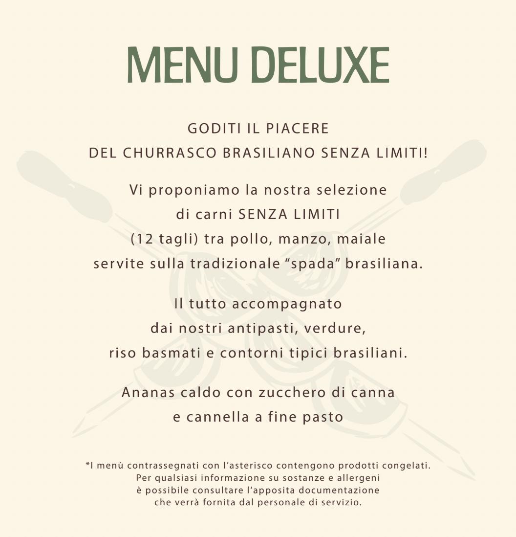 Con il nuovo menù Churrasco Deluxe avrai disponibili 12 diversi tagli di carne. In aggiunta al menù classico troverai il Controfiletto di manzo ed il Capocollo di maiale!